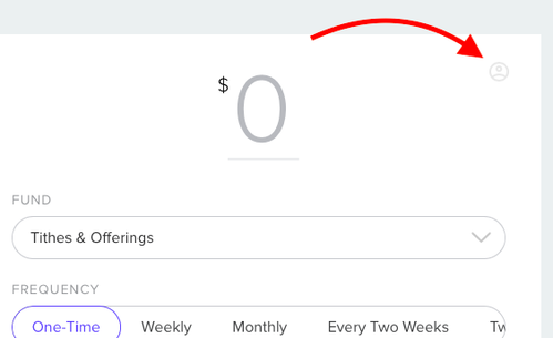 *If you are a returning user and need to verify your bank account, click the small gray person icon at the top right hand corner of the give tab as shown below.